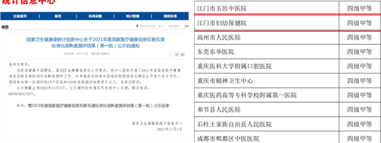 国家卫生健康委统计信息中心发布《关于2021年度国家医疗健康信息互联互通标准化成熟度测评结果(第一批)公示的通知》(以下简称《通知》),对参加第一批测评结果进行公示,其中,江门市妇幼保健院获评四级甲等。