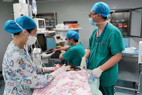 手术室里无影灯下,考验麻醉师的时候到了,业内人都知道:孩子越小,麻醉越难。眼前,躺在手术床上的宝宝只有19个月大,为了顺利施麻,麻醉团队迅速调整为由高年资的高锦文副主任医师领头,两位久经考验、临床经验丰富的黎惠斌主治医师、黎婉婷主治医师协助。