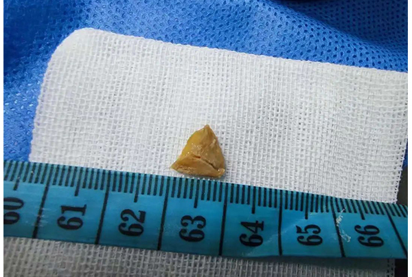 纤支镜下,清晰的显现了异物的位置与形状,取气管异物对于吴主任来说早已是轻车熟路,很快异物被取出,原来是半个瓜子壳。